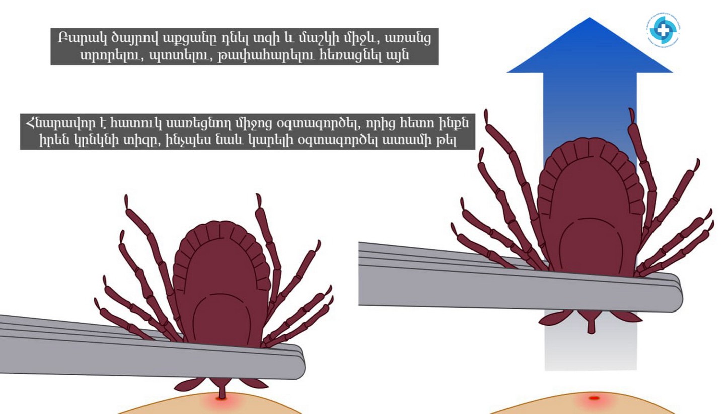 - Ինքուրույն կարող եք հեռացնել, սովորական աքցանով։ Եթե կասկածում եք, համացանցում բազմաթիվ վիդեոներ կան, թե ինչպես հեռացնել տիզը։