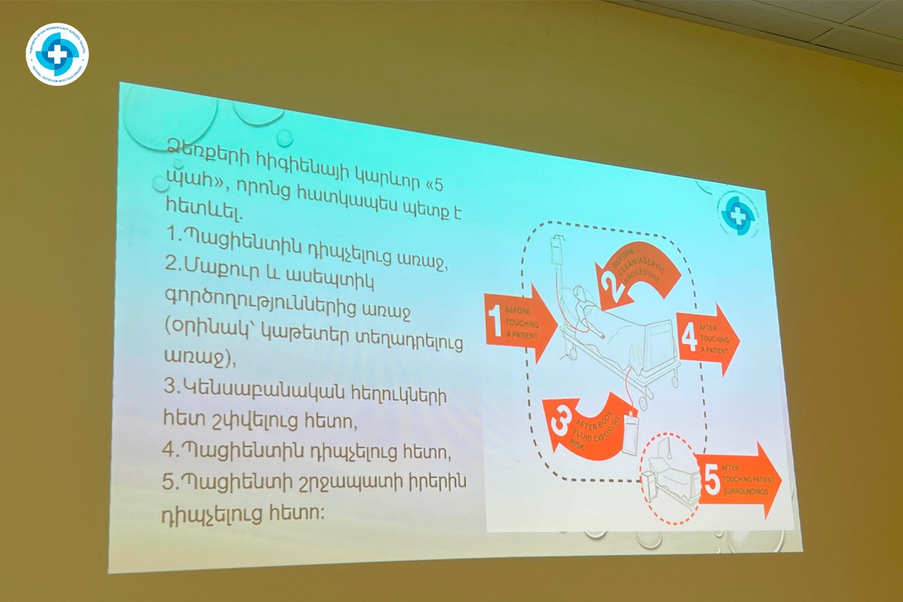 Օրվա առթիվ Ինֆեկցիոն հիվանդությունների ազգային կենտրոնի բուժանձնակազմը ներհիվանդանոցային թրեյնինգի մասնակցեց, որի ընթացքում կենտրոնի ներկայացուցիչներն անդրադարձան ձեռքերի պարբերաբար և ճիշտ լվացման կարևորությանը։
