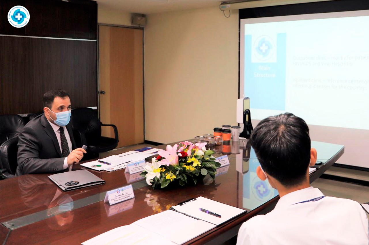 Ստեփան Աթոյանը հանդիպման ընթացքում գործընկերներին է ներկայացրել ՀՀ ԱՆ Ինֆեկցիոն հիվանդությունների ազգային կենտրոնի գործունեությունը, իրականացված և իրականացվող ծրագրերը, պատասխանել հանդիպման մասնակիցներին հետաքրքրող հարցերին։