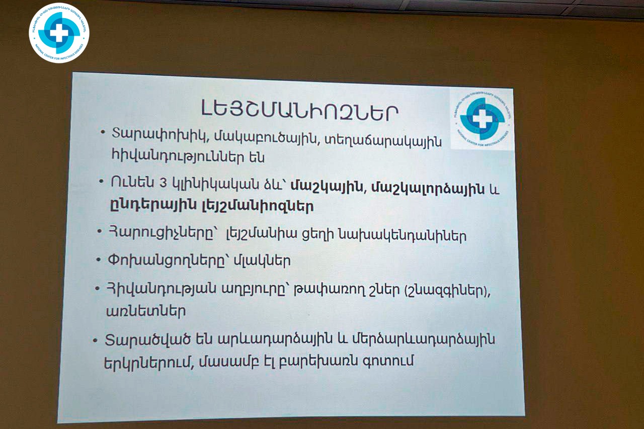 Բուժքույրերի համար անցկացված ներհիվանդանոցային հերթական դասընթացի թեման լեյշմանիոզներն էին։ Քննարկման առանցքում էին հիվանդության փոխանցման ուղիները, կանխարգելումն ու դրա համար անհրաժեշտ միջոցառումները։
